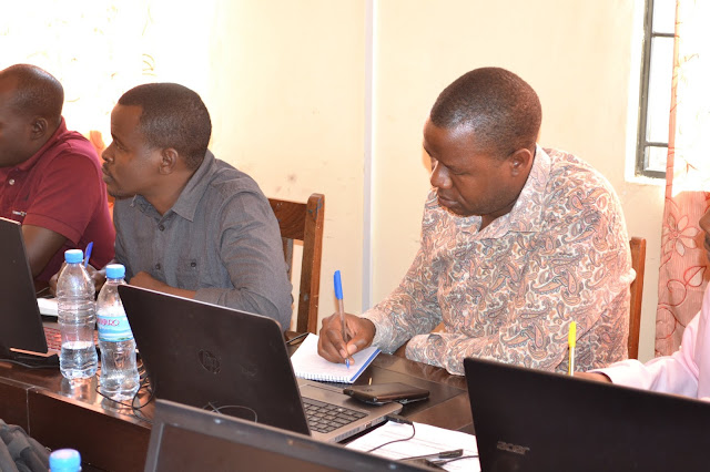 Washiriki wa Mafunzo ya kuwajengea uwezo Maafisa TEHAMA wa Halmashauri za Mkoa wa Singida wakiwa katika nyuso zenye furaha kwa kufurahia jambo wakati wakifuatilia  mada iliyokuwa ikitolewa na mwezeshaji ambaye ni Afisa TEHAMA - Ofisi ya Mkuu wa Mkoa Singida Bw. Baraka Mhembano.
