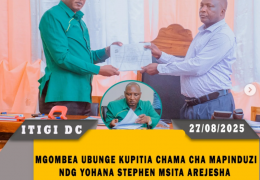 Posted on: August 27th, 2025 Ndugu Yohana Stephen Msita (Kushoto) Mgombea Nafasi ya Ubunge Kupitia Chama cha Mapinduzi (CCM) arejesha Fomu ya Uteuzi hii Leo Katika Ofisi za Msimamizi wa Uchaguzi Jimbo la Itigi...